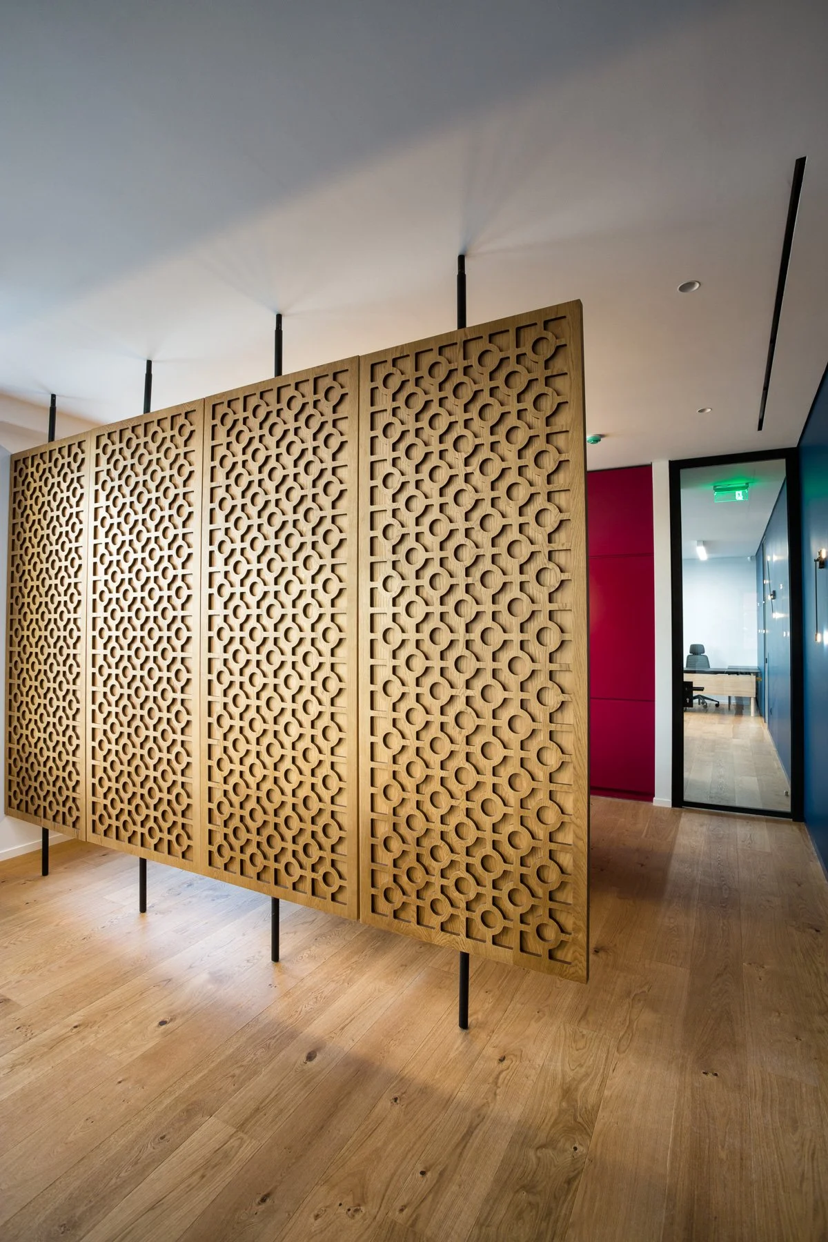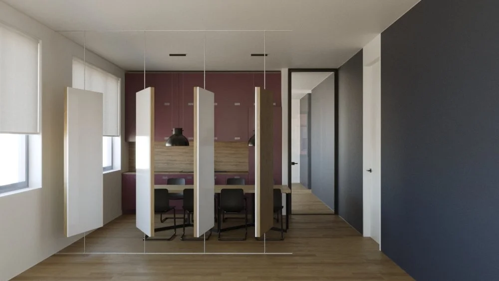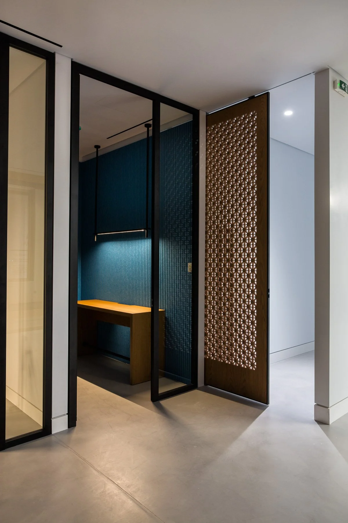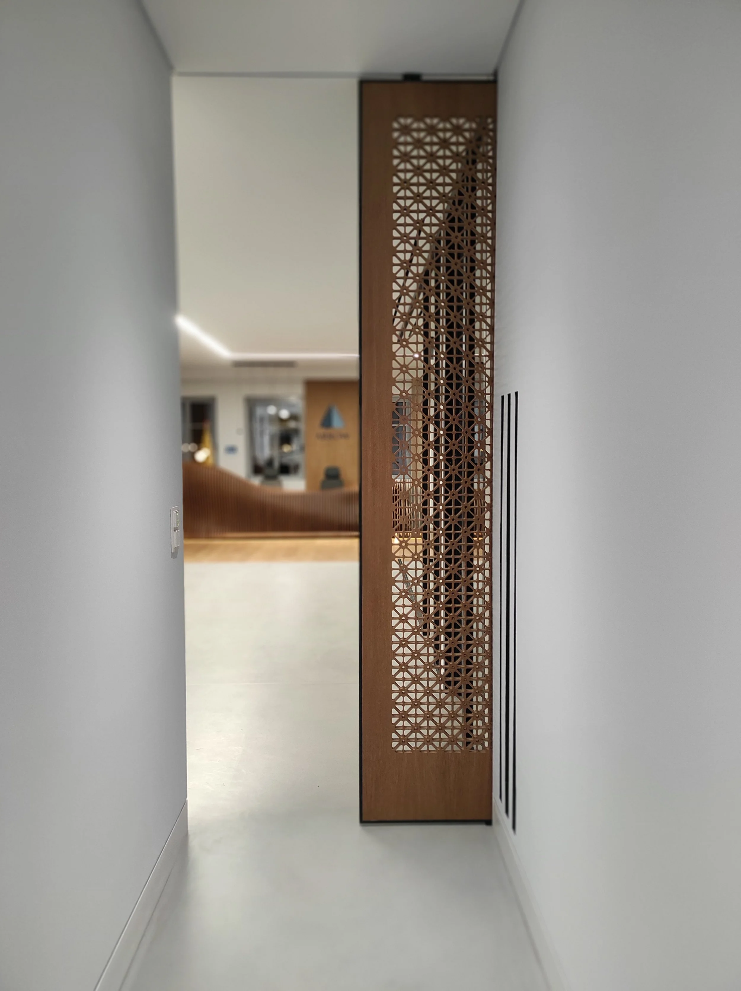 The architectural concept is complemented by custom-made furniture tailored to each space, creating unique pieces that act as special elements and elevate the overall working environment. Earthy materials and an abundance of natural wood accents were incorporated to enhance the cozy ambiance, promoting a sense of tranquility and connection to nature. This thoughtful design creates a perfect balance between professionalism and comfort, offering a space that is both functional and inspiring for those who work inside it.